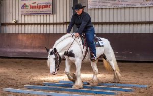 Dennoch versuche ich auch aktuell so viel Abwechslung wie möglich ins Training zu bringen, das heißt, dass wir mal in der Halle, mal auf dem Platz reiten, auch einfach mal nur ohne Sattel raus gehen, in den Garten reiten zum Anweiden oder normales Stangen– oder Patterntraining mit einbauen.