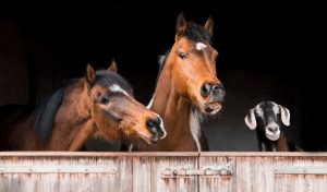 Ziegen haben ein weniger ausgeprägtes Herdenverhalten als Pferde und doch funktionieren Sie im Team erstaunlich gut. Oft fordern sie die Pferde zum gemeinsamen Spielen oder zu Rangkämpfen auf, daher sollte man darauf achten, dass die Ziegen nach hinten gebogene Hörner haben. Ebenso neigen Ziegen dazu, eine enge Bindung zum Pferd aufzubauen. So kann man sie sogar zum Ausritt mitnehmen. Als Nahrungskonkurrenz sind sie nicht zu sehen, da sie zwar Gras fressen, aber auch Blätter, Kräuter und Sträucher brauchen. Problematisch wird es nur mit der Umzäunung – um Ziegen innerhalb der Weide zu halten, benötigt es einen mindestens 1,30 m hohen Schafszaun vor dem Elektrozaun.