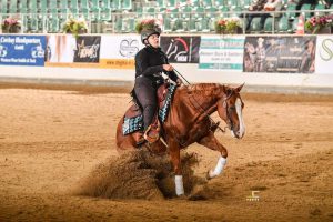 Auch bei der Fortführung der Jungpferdeklassen, in den Youngstars Klassen, kann sich eine Baden-Württembergerin behaupten. Mit ihrem 6 jährigen Quarter Horse Wallach „Be Full Chex Boy“ gewinnt Lucie-Lina Egenter die Youngstars Reining. Eine tolle Leistung, insbesondere weil Lucie-Lina sich als Jugendliche in diesem Starterfeld auch gegen die Erwachsenen behauptete!