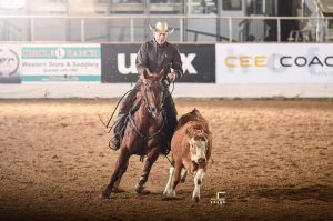 Die Kuhklassen hatten allesamt eine wirklich wilde Herde an jungen Rindern erwischt. Patrick Sattler und sein Junior-Pferd Justa Shiningsparkle kommen mit diesen frechen Kühen dennoch super zurecht und behaupten sich gegen die Konkurrenz mit einem Score von 431 Punkten, Gold für dieses Team!