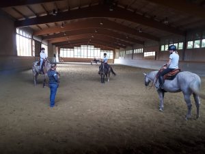 Es waren 8 Jugendliche vor Ort, die von Enja Libor trainiert wurden. Enja hat die Jugendlichen nach Leistungsstand und nach favorisierten Disziplinen eingeteilt, dann ging‘s sofort los. Sie ging auf jeden Jugendlichen ein, es war ein individuelles und intensives Training. Da Enja in fast allen Disziplinen zu Hause ist, konnten die Jugendlichen von Reining bis Trail alles üben und nahmen gute Tipps für das weiterführende Training mit nach Hause. Mittags wurde gegrillt, außer Fleisch gab es auch noch Vegetarisches und Salate. Neue Kontakte wurden geknüpft und die Teilnehmer fuhren müde und zufrieden nach Hause. Vielen Dank Enja für den tollen Kurs!