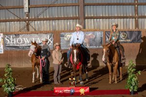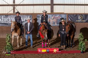 Vieze Landesmeister: Jennifer Knabe mit Great Whistle gesponsert von AJ Reining Horses  Merrit Neben mit Smart Art Weasley gesponsert von Golden Peanut