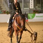 Cody Bay Tivio hat sich mit Jutta und Hund Nanuk als Horse & Dog Trail Gespann der ersten Stunde weit über die Landesgrenzen des Rheinlandes hinaus einen Namen gemacht. Und wer hätte gedacht, dass der Reining-gezogene Cody seine erste Pferdemedaille in der Western Pleasure bekam.