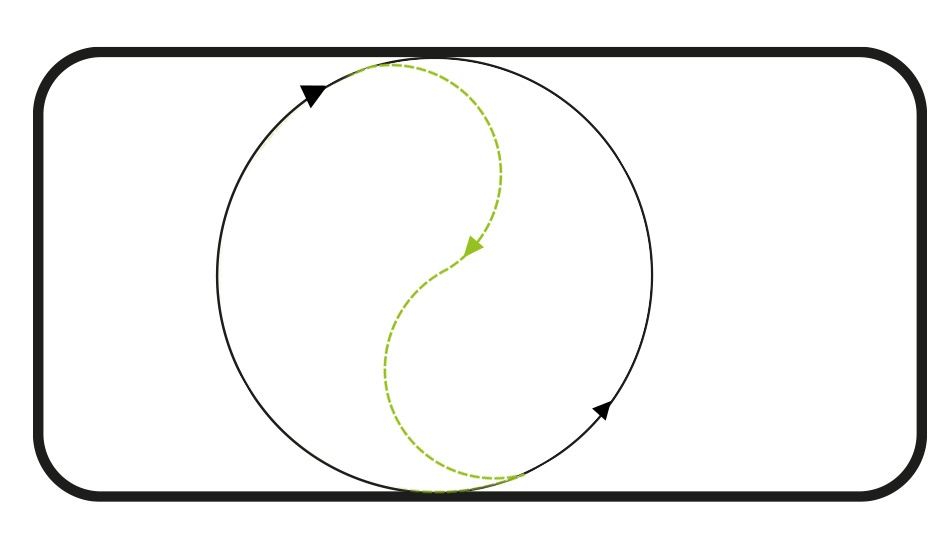 Auf dem Zirkel im Lope, an einem beliebigen Punkt einen Übergang zum Jog reiten, dabei durch den Zirkel wechseln, an der Zirkellinie weiter im Lope.